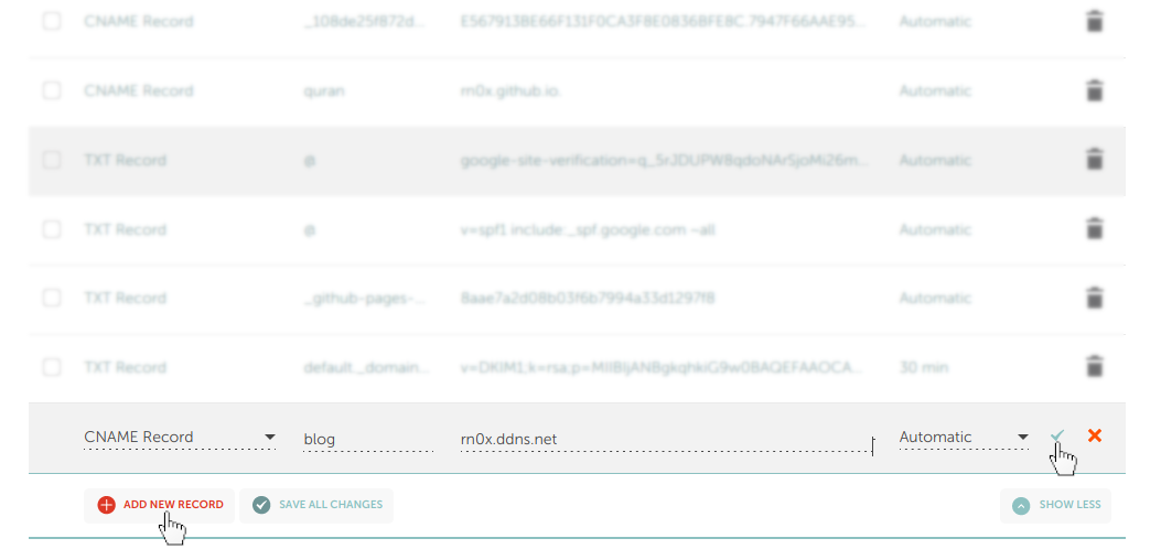 - سأقوم بتوصيل نطاقي من namecheap بإسم المضيف الذي أنشأته على موقع no-ip (rn0x.ddns.net)