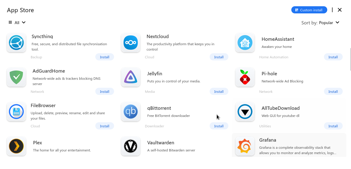 - متجر التطبيقات مثل Nextcloud و HomeAssiant و Jellyfin وغيرها الكثير