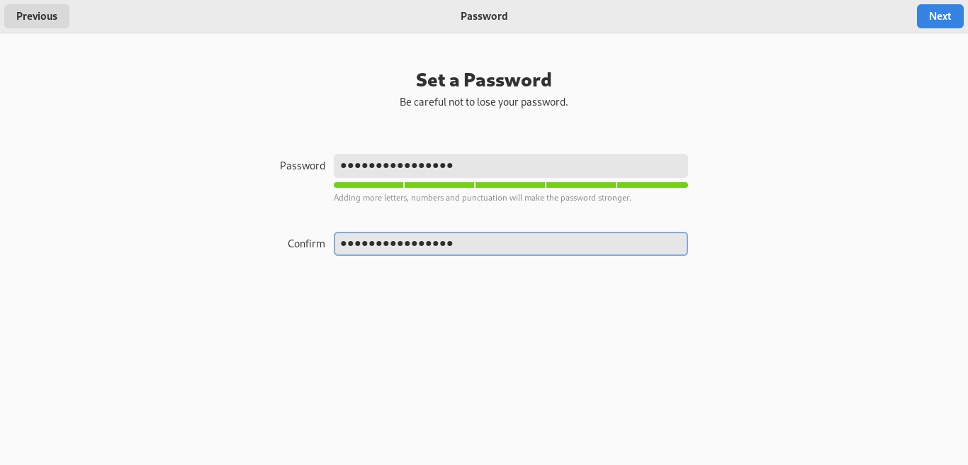 أدخل كلمة سر المستخدم وأعد كتابتها للتأكيد، ثم اضغط على Next.
