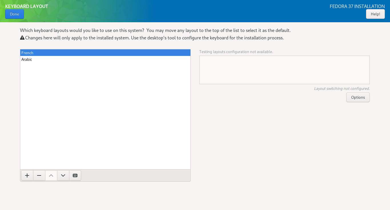 boot/efi/بنظام ملفاتvfatبحجم 600 ميغابايت في حالة كان الإقلاع من نوعUEFIيحتوي على ملفات الإقلاع، في حال كان هذا القسم موجودا من قبل فسيستخدمه دون إنشائه مرة أخرى. - قسم للجذر والمنزل