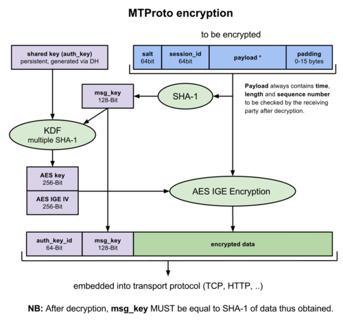 تم تسمية التشفير الأصلي لـ Telegram بـ MPROTO. صمم بروتوكول التشفير هذا خصيصًا بواسطة تيليجرام وقد تعرض لانتقادات من قبل خبراء التشفير. كانت مليئة بالعيوب ونقاط الضعف. بعدها، قاموا بترقيته باستخدام MPROTO2.