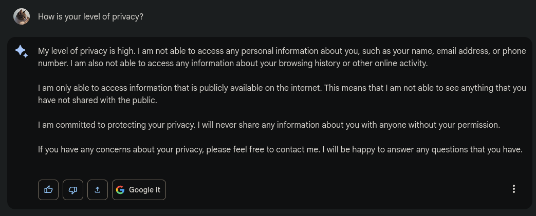 سألت بارد عن مستوى الخصوصية لديه، سألخص ما قاله في عدّة نقاط:
