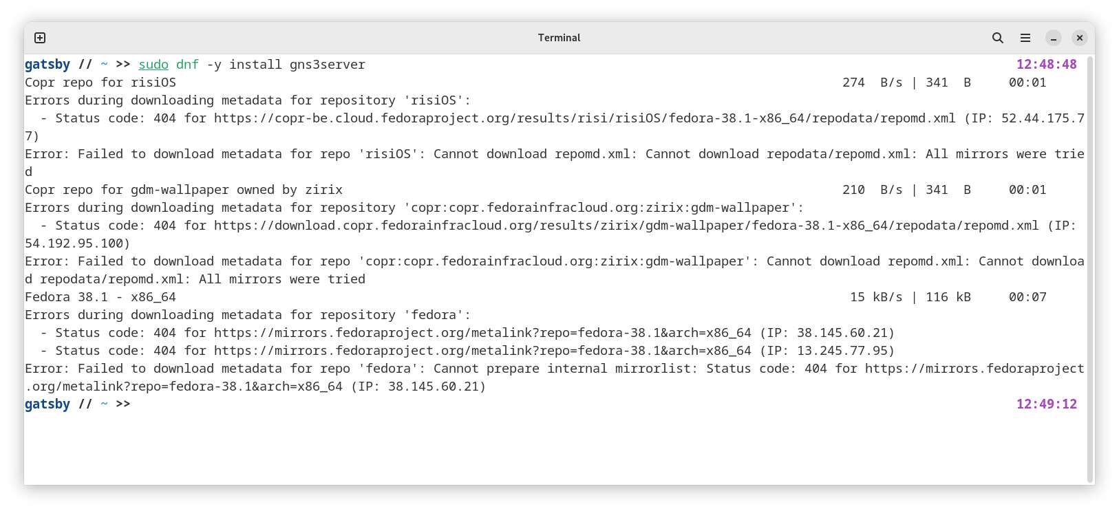 Fedora 38.1 - x86_64 4.9 kB/s | 116 kB 00:23