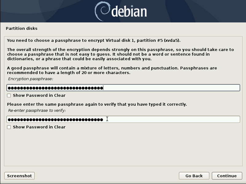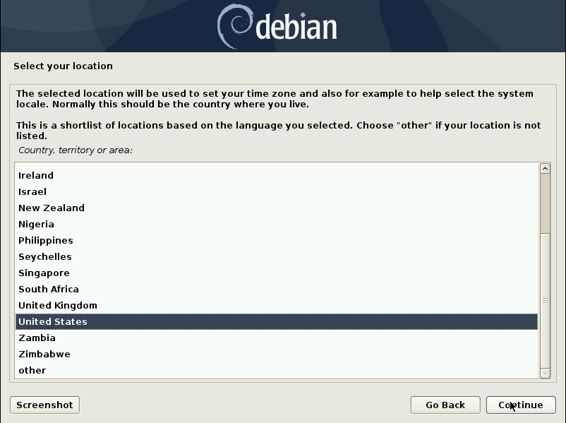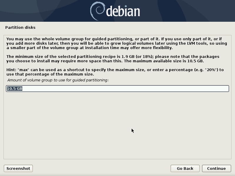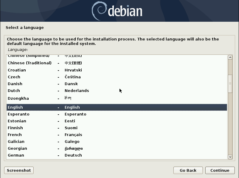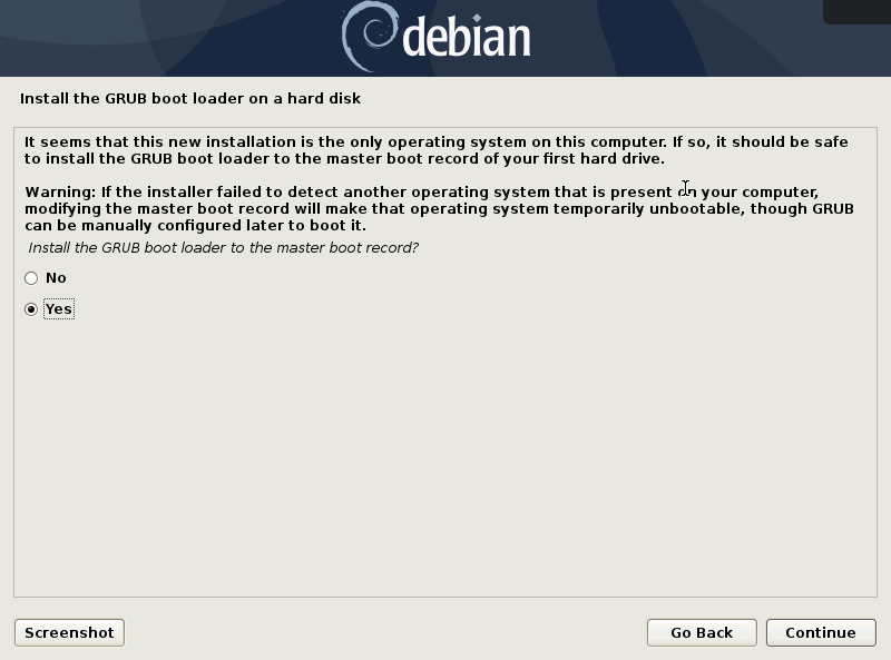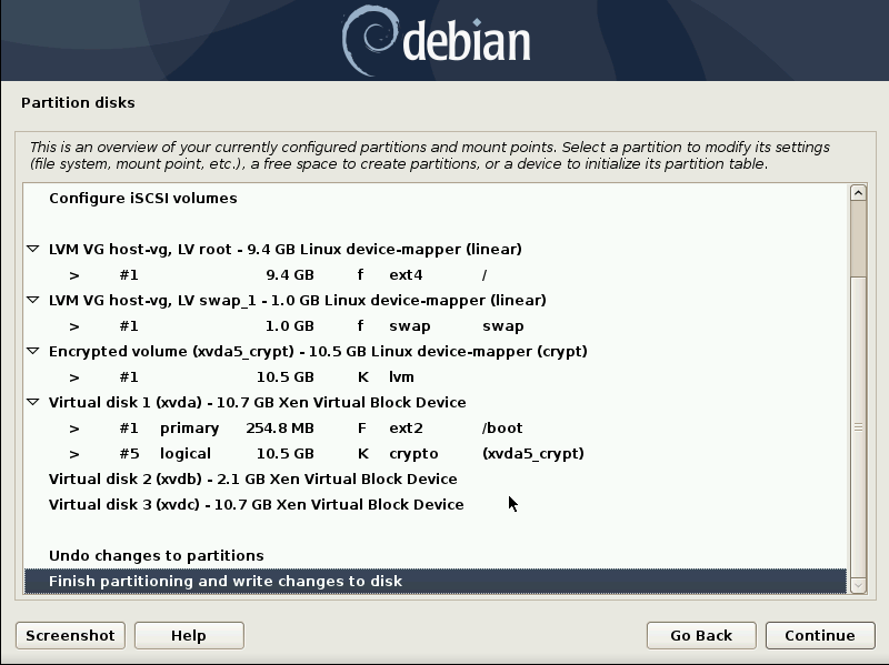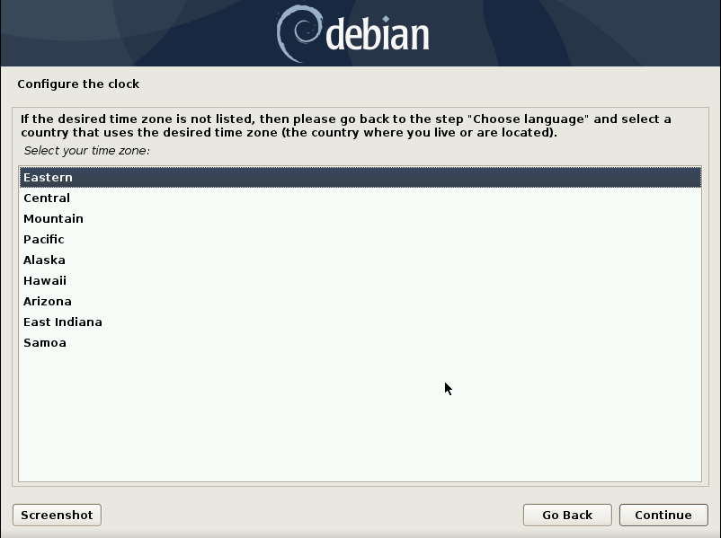 - ثم اختر القسم الذي قمت بتنصيب ديبيان عليه (في حاله كان قسم واحد فقط فاختره) ثم Continue