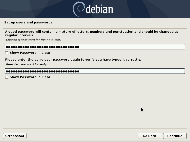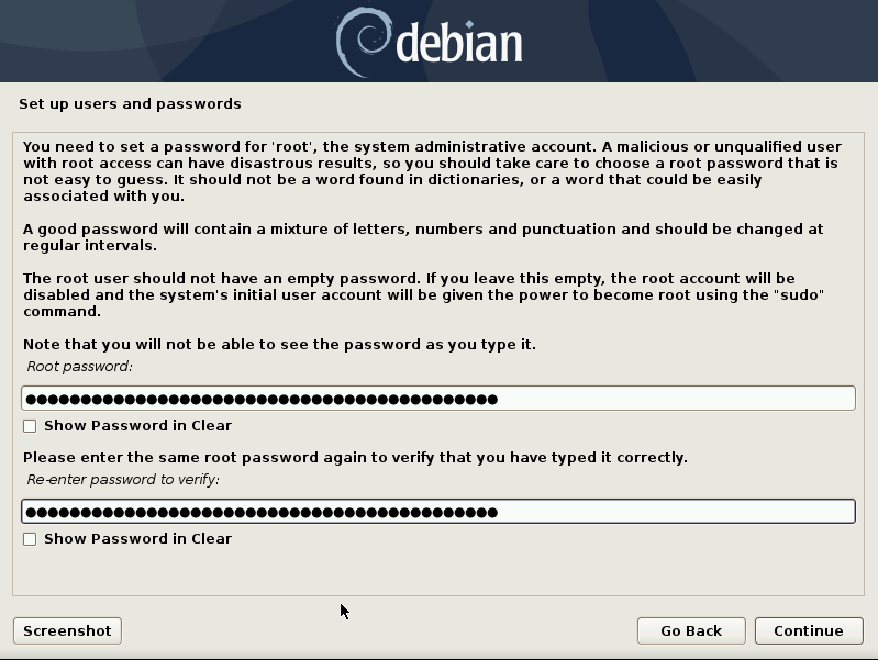 - ضع كلمه السر المناسبه للمستخدم (وهذا ينفع اذا اغلقت شاشه الحاسوب سيسألك عن باسورد وكذلك بعد تشغيل الحاسوب وكذلك اذا استخدمت sudo بدلا من su)
