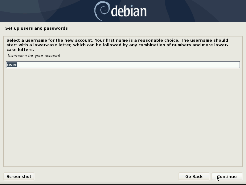 - اكتب اسم المستخدم ويفضل ان يكون user كبداية.