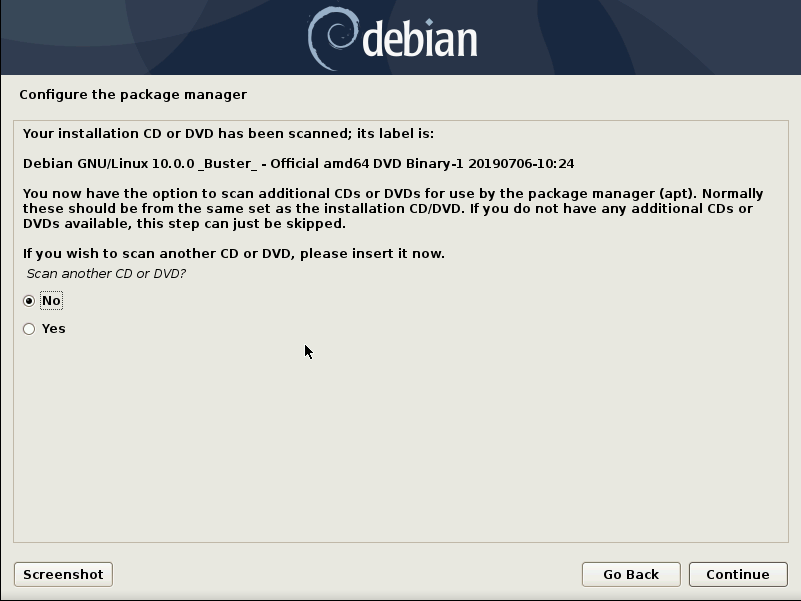 - انتبه على وضع الخيار No ثم اضغط Continue