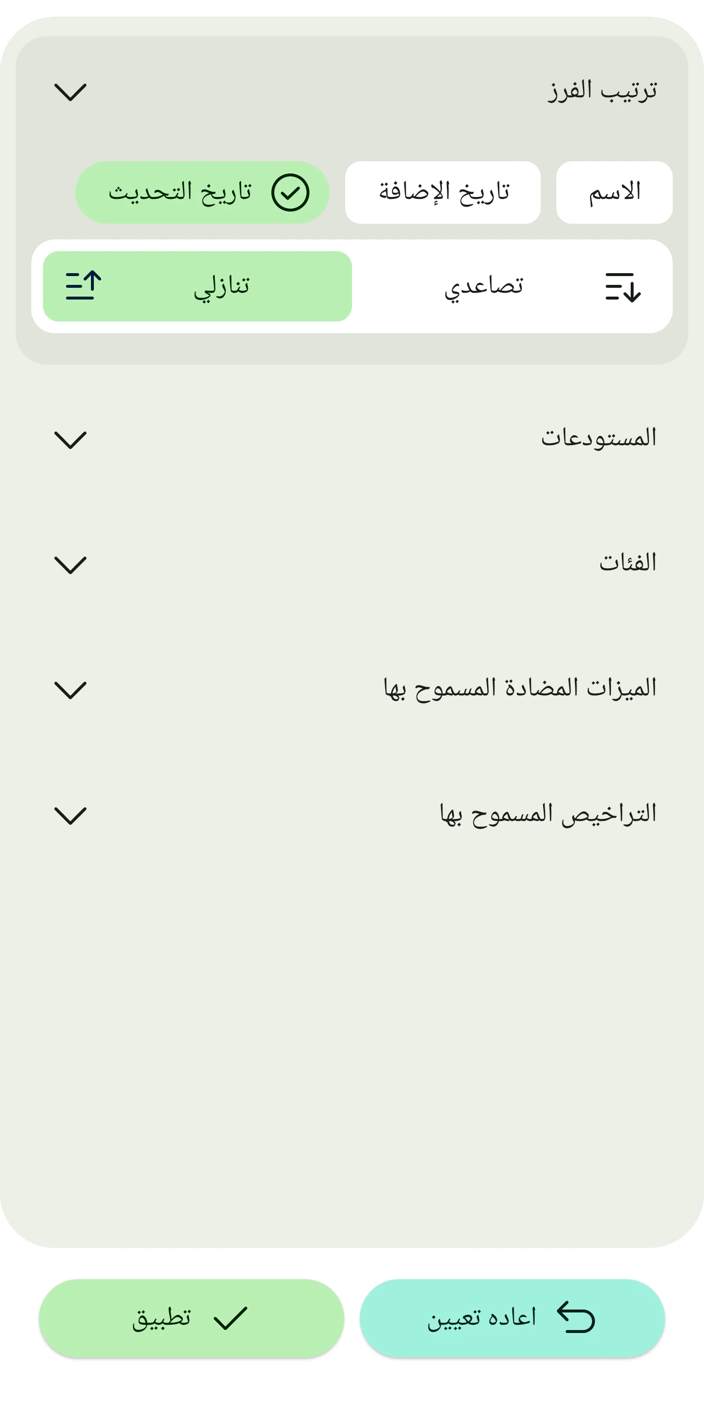 مثل فرز النتائج حسب التطبيقات المفضلة