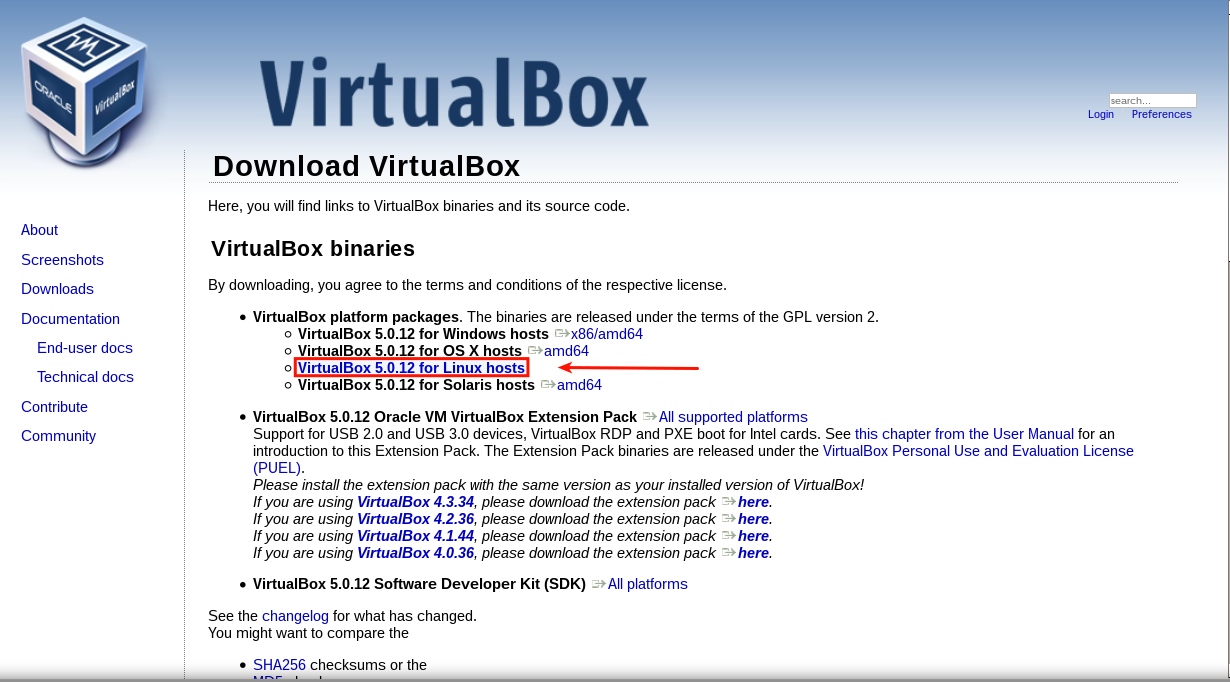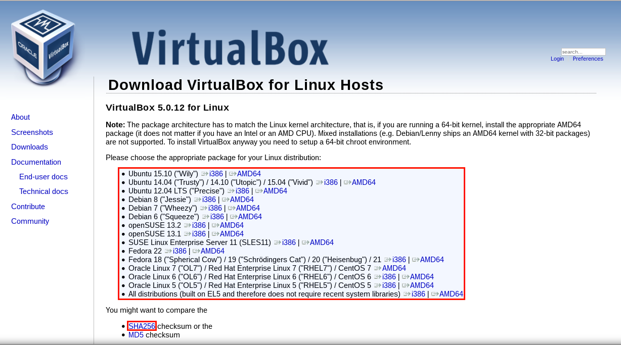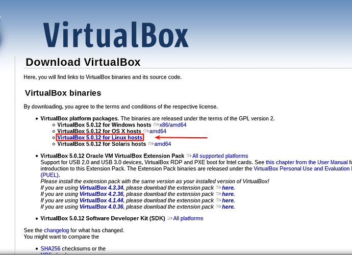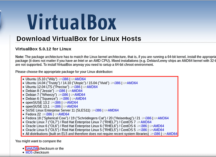 - تختار نسخه الvirtualbox بحسب توزيعتك التي تستخدمها ubuntu او debian او fedora …الخ. طيب وماذا يعني الi386 والAMD64 ؟ هيه نفسها ال32bit وال64bit وهذا يعتمد على قدرات حاسوبك (ضعيفه او قويه) وكذلك نسخه جنو/لينكس التي قمت بتنصيبها على حاسوبك.