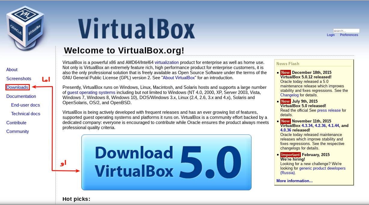 - قم بالذهاب الى موقع virtualbox ثم تابع الصور:-