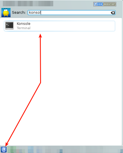 فتح الkonsole/terminal