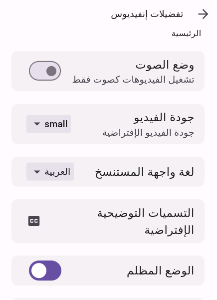 - إمكانية تشغيل الفيديوهات كصوت فقط مع دعم التشغيل في الخلفية بالنسبة للهواتف (إحدى الميزات الجميلة جداً بالنسبة لي)