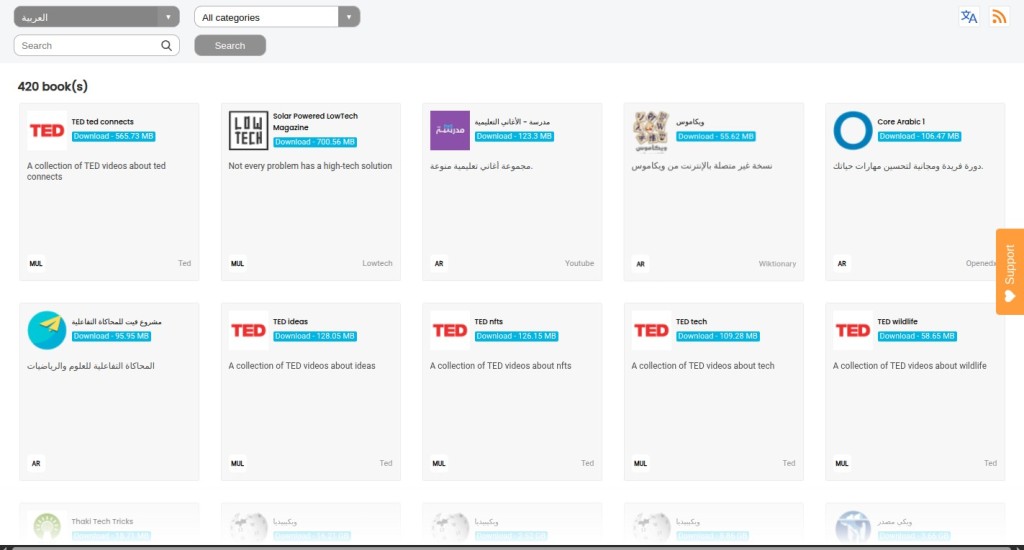 - جميع المكتبات: library.kiwix.org