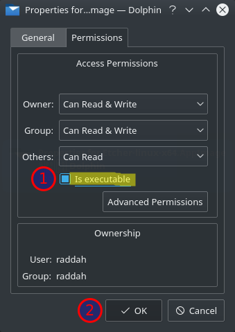 - قم بجعل ملف التطبيق قابل للتنفيذ اذا كنت تستخدم لينكس