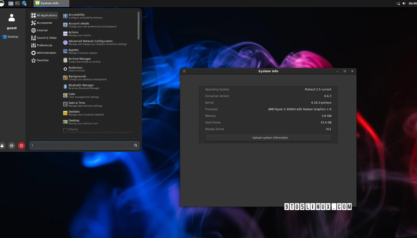 توزيعة PorteuX 2.5 تأتي مع دعم ل Flatpak, وبيئات سطح المكتب Cinnamon 6.6, COSMIC 1.0, ونواة 6.18
