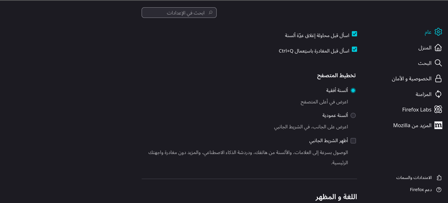 دعم العربية في الواجهة