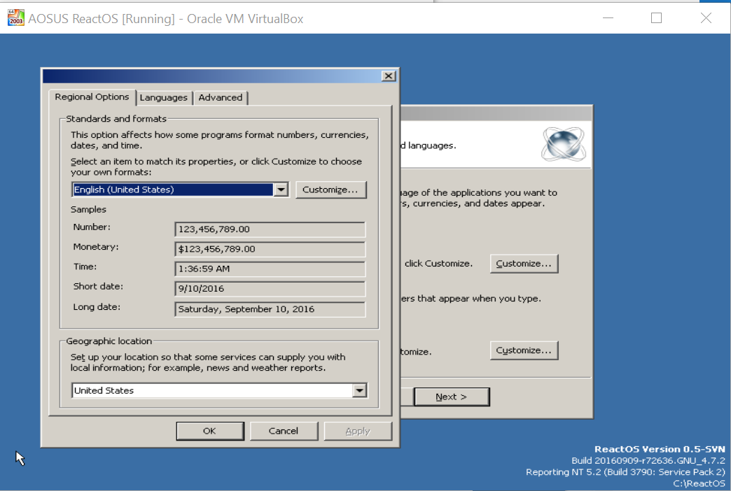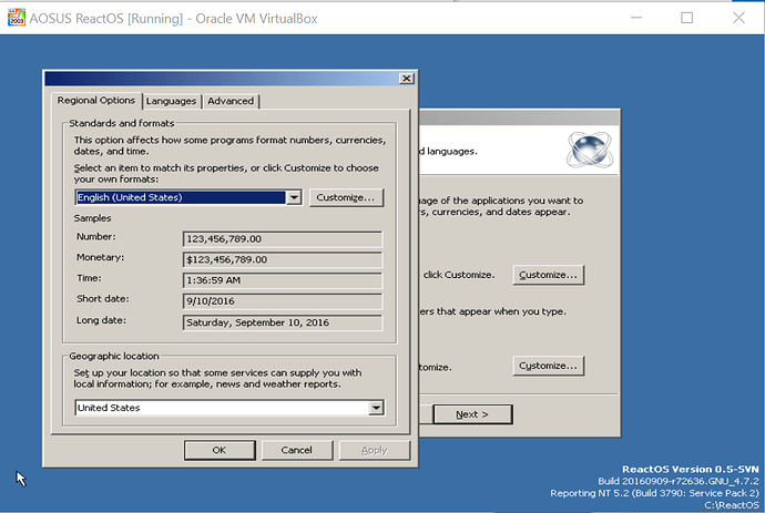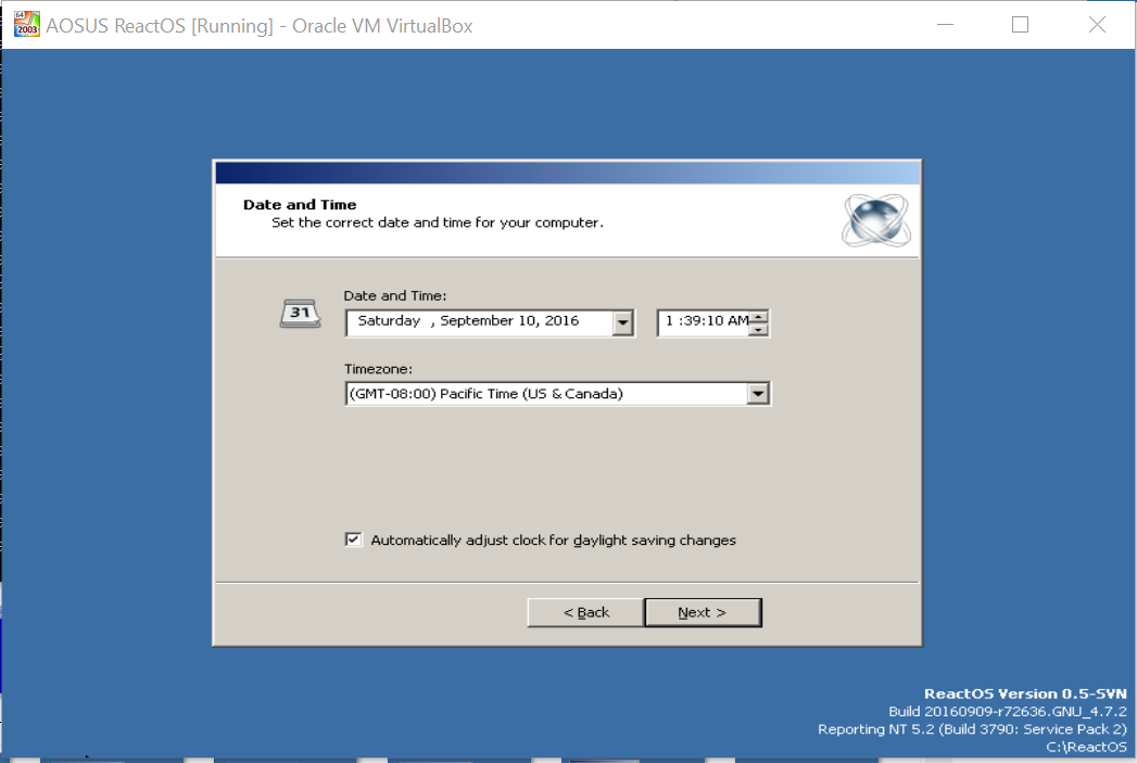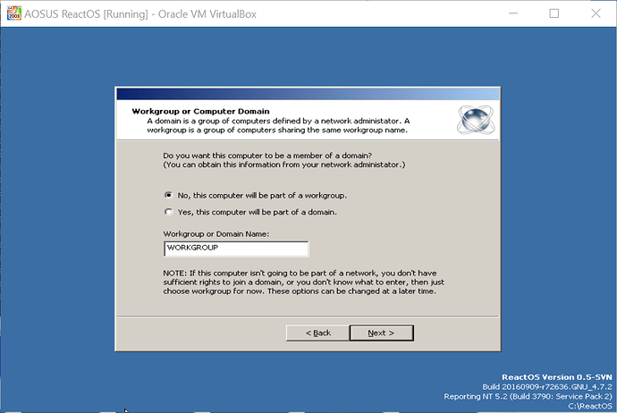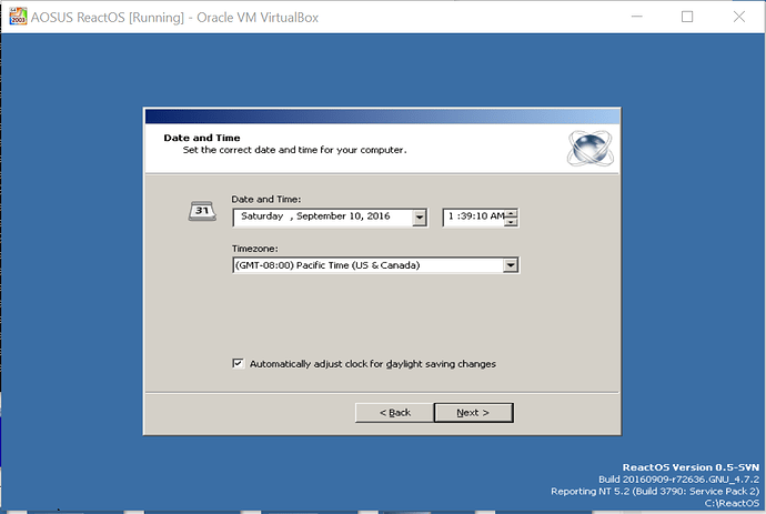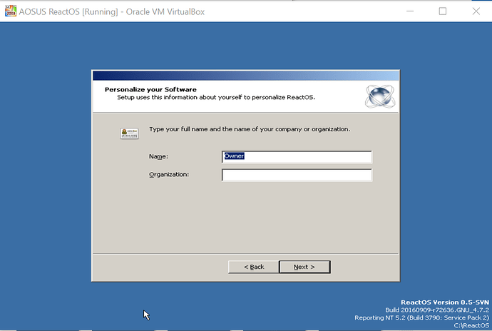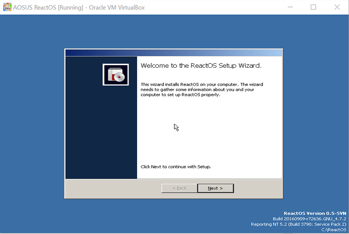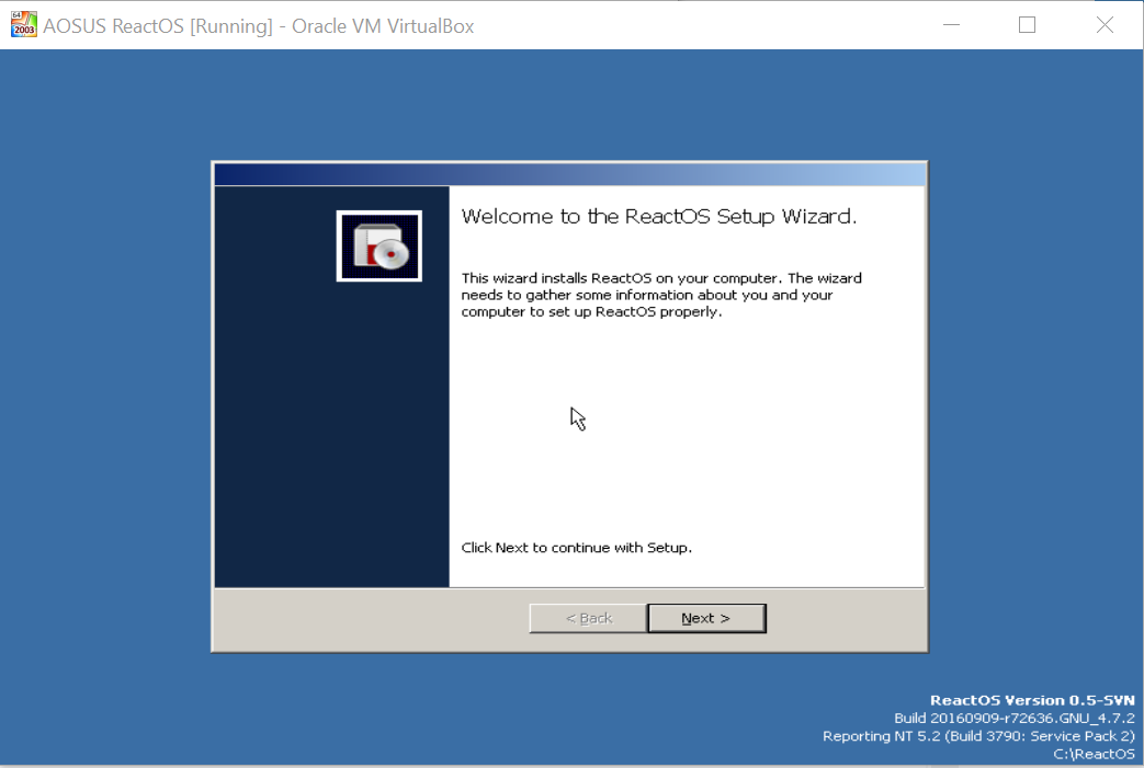 انتظر حتى يظهر لك معالج الإعداد Setup Wizard الخاص ب ReactOS: