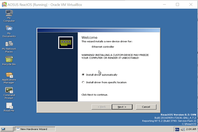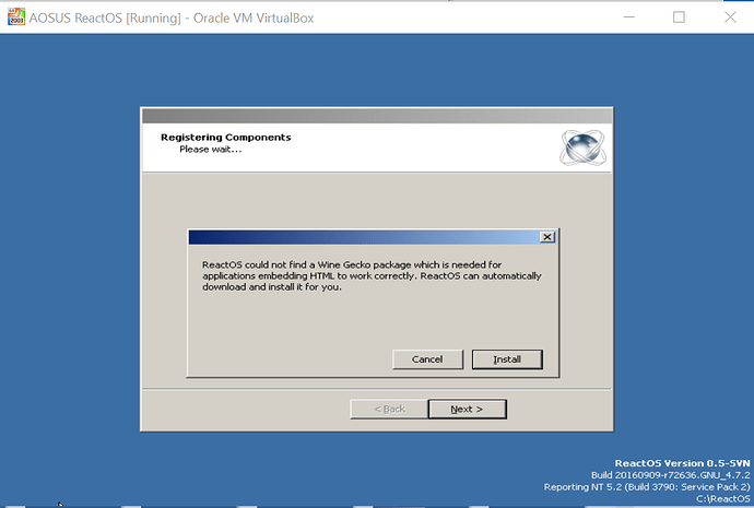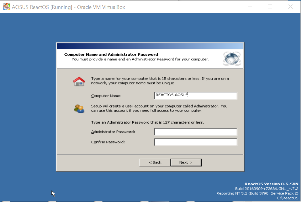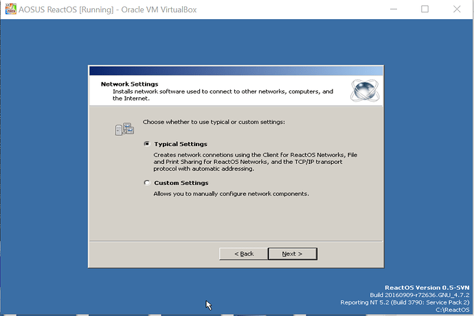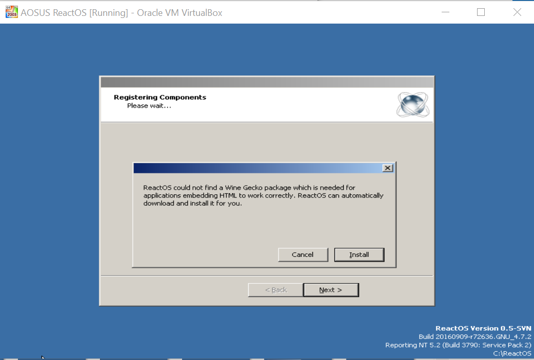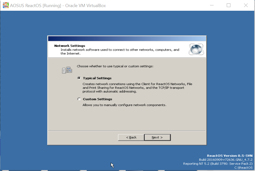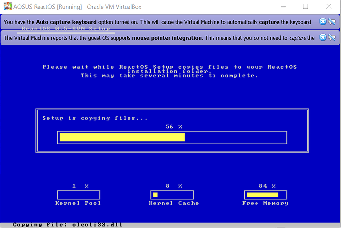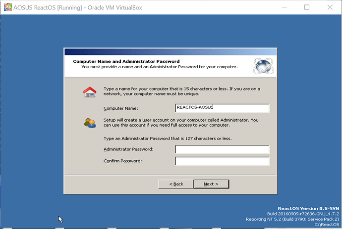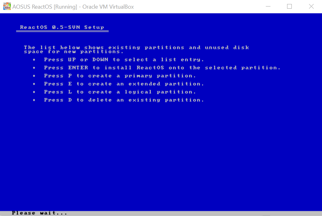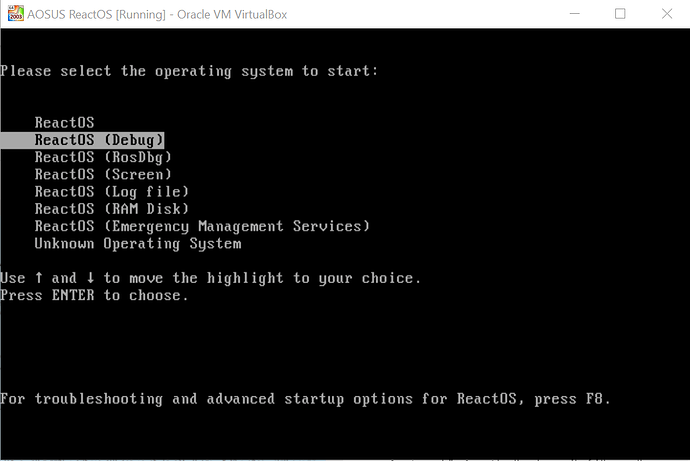 الآن، وبعد الانتهاء من كتابة الملفات الخاصة ب ReactOS ستظهر هذه القائمة: