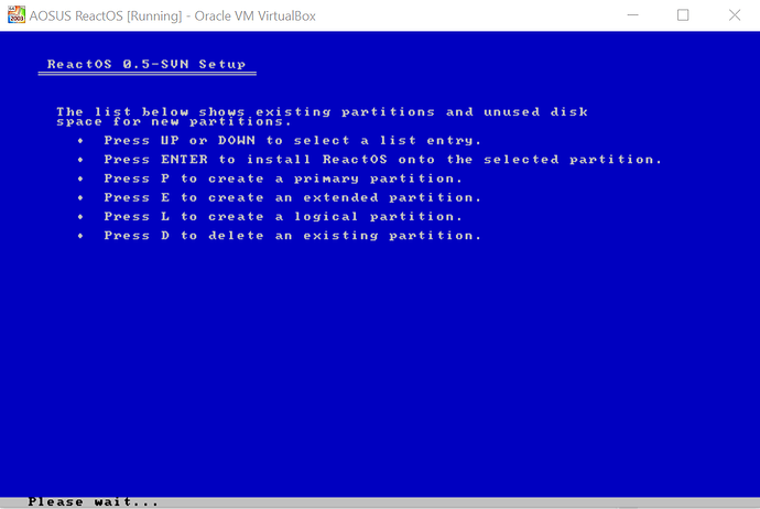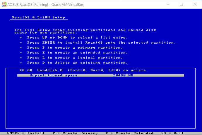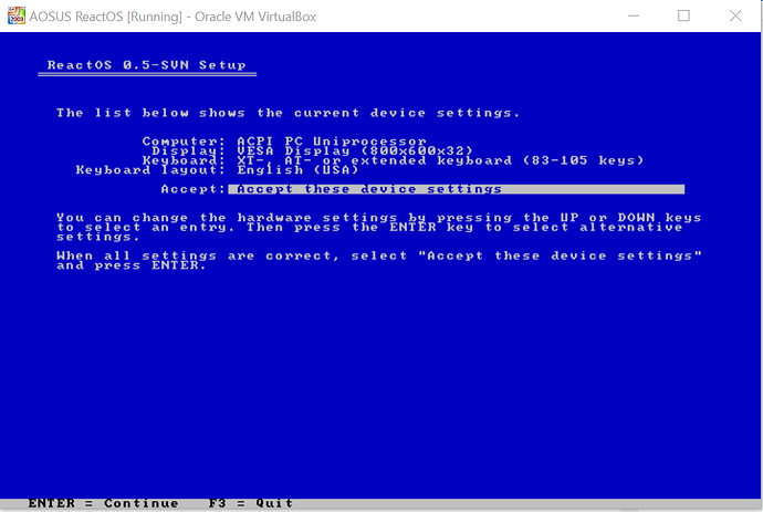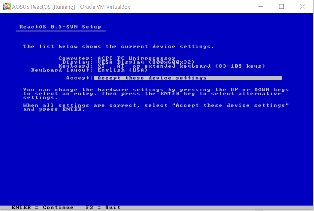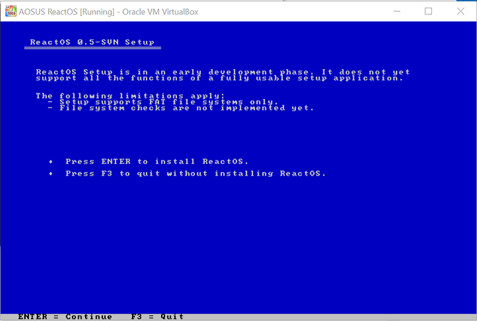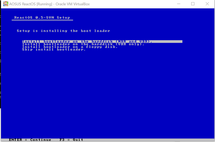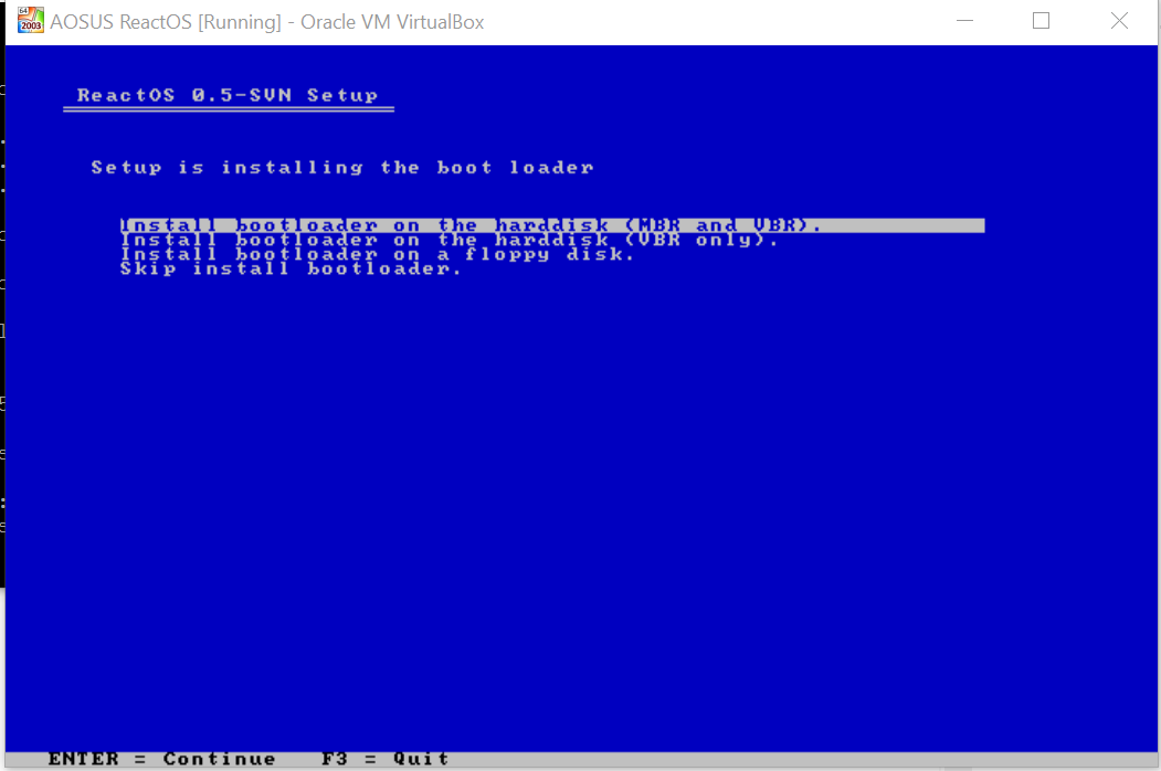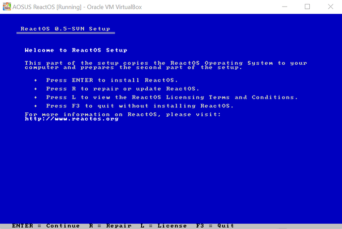 - قم بالنقر على زر F3 للخروج بدون تثبيت ReactOS.