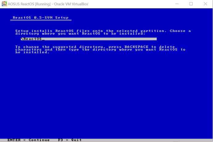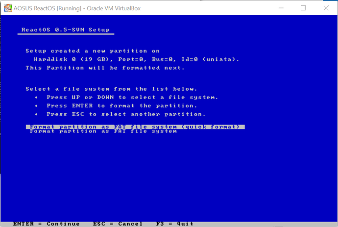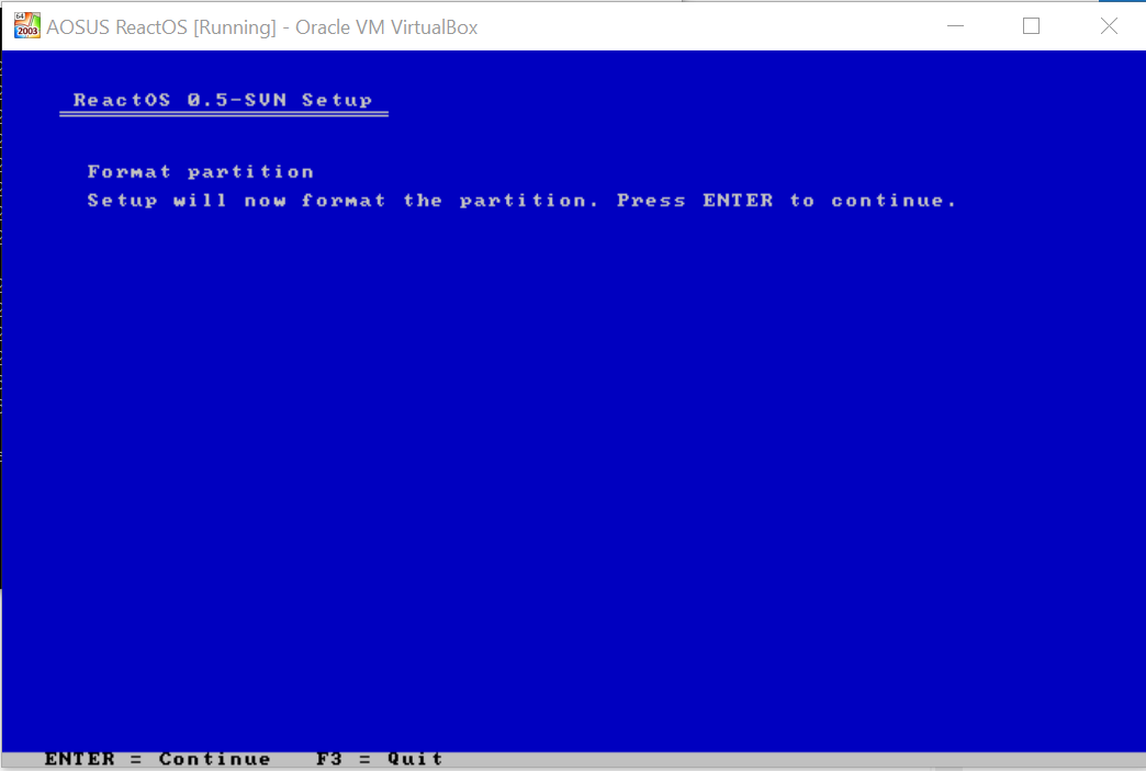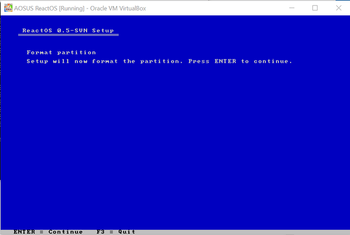 - قم بالنقر على زر الدخول Enter لتثبيت ReactOS في القرص ( Partition ) الذي تم اختياره.