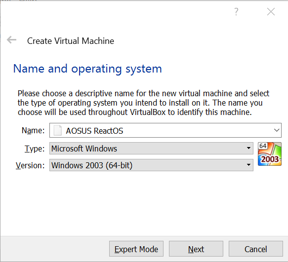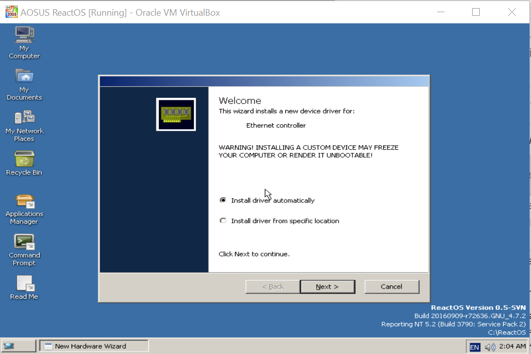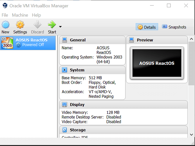 يمكنك تجربة ReactOS على آلة افتراضية Virtual Machine بمواصفات بسيطة وهي :