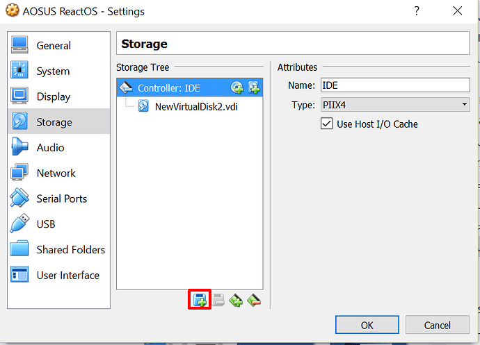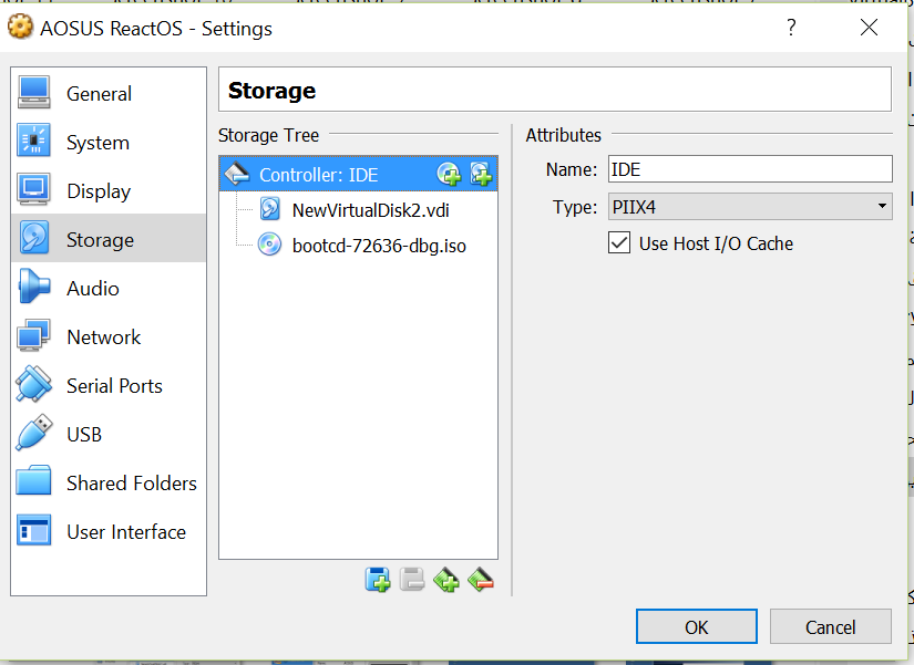 كذلك سنحتاج إلى Com0com للربط فيما بين Virtualbox و Putty حيث أن وظيفته يعمل كجسر فيما بينهما سنقوم بتحميل ملف bootcd الخاص ب ReactOS ثم نقوم بإعداد الآلة الإفتراضية كالتالي: