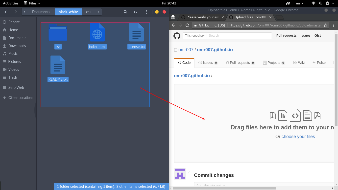 قم بسحب ملفات موقعك وافلاتها كما في الصورة وانتظر الي ان يتم رفعها لن تستغرق سوي ثواني معدودة علي حسب سرعة الانترنت لديك